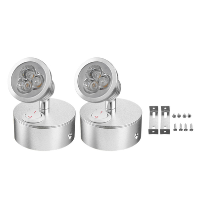 Colour: Black, Silver LED Color: Warm White 6000k Voltage: 12v-24v Light Source:LED Bulbs Switch Type: Knob Switch Power For Single LED: 3w Installation Type: Wall Mounted Light Source: High Power LEDLuminous Flux (LM): 270 LM/PCSPower Efficiency: More Than 80% Condition temperature: -20~40 degree Working Lifetime: 50, 000 hours Luminous Intensity: 100 (LM)/WBeam Angle: 360