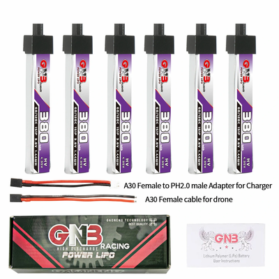 6Pcs Gaoneng 3.8V 380mAh 60C 1S LiHV Battery A30 Plug With Adapter