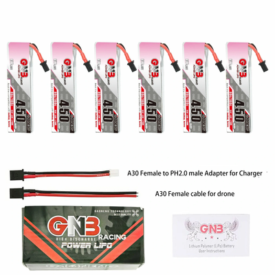 6Pcs Gaoneng 3.8V 450mAh 80C 1S LiHV Battery A30 Plug With Adapter