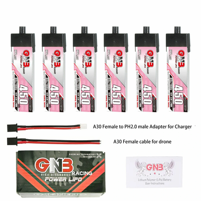 6Pcs Gaoneng 3.8V 450mAh 80C 1S LiHV Battery A30 Plug With Adapter