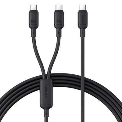Baseus Q Rebound Series 100W Type-C to Type-C+Type-C Cable Fast Charging Data Transmission Tinned Copper Core Line 1.5M Long for iPhone 15 15 Plus for Huawei Pura 70 Ultra for Honor Magic V3 for Samsung Galaxy Z Fold6
