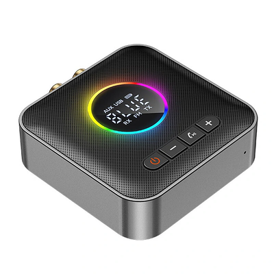 Only US$15.99, buy best m 10 1-to-2 bluetooth 5.4 audio receiver fm modulator transmitter with rgb light hands-free calls 3.5mm aux type-c multi-point interface digital display adapter sale online store at wholesale price.