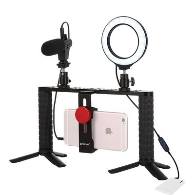 Features:ï» Video Rig It is a must-have for you, if you love recording high quality videos. It makes shooting videos much easier since you have a much better grip with two handles. With many 1/4 inch thread mount slots, you can get lighting & microphone attachments. A fantastic tool for who need take higher quality phones or videos close to professional level. The special design will enable you to take steady shots & capture unique life experiences A must-have accessory for anyone wanting to improve their filmmaking skills with a phone that shoots better images than many high end cameras. You can mount it with any tripod, slider or dollys. Compatible with most smartphones within 45-93mm width. Ring LED Light LED ring light can be mounted on the holder & take it anywhere, it can also be removed from the stand at any time, the tripod ball head can 360 degree rotating can free to adjust to any angle (The holder is not included). The ring light is made from 40pcs energy-saving LED beads, it heat dissipation is excelle