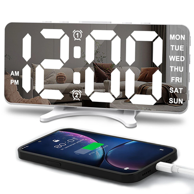 Dimming Mirror Rechargeable Digital Clock For Bedrooms