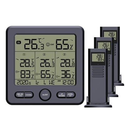 TS-6210 1-to-3 Wireless Weather Station Indoor Outdoor Temperature and Humidity Sensor Digital Display Thermometer Hygrometer with Backlight Smart Home Sensor Kit