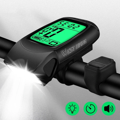 Only US$15.99, buy best west biking 3 in 1 330lm brightness bike headlight 1200mah battery ip64 waterproof 4 light modes smart speedometer with 100db horn for night cycling sale online store at wholesale price.