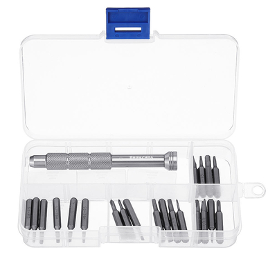 Specification: Size: 110*67*22mm The length of handle: 100mm The length of Bit: 29mm Weight: 110g Type of Bit: T5 T6 T8 T9H1.5 H2.0 H2.5 H3.01.0/2.0/3.0 slotted bit Packaging Included:1X Screwdriver set